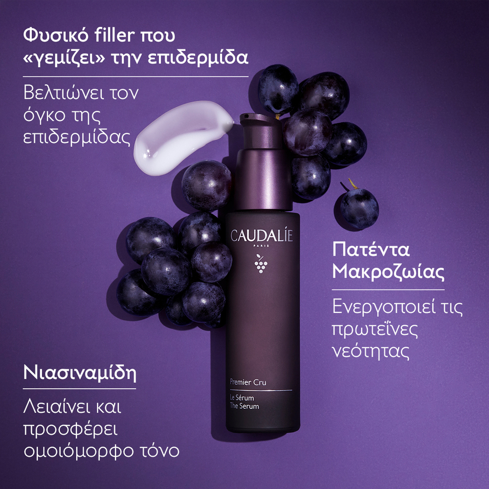 Ενισχυμένη με την πατέντα μακροζωίας της Caudalie και ένα φυσικό filler που γεμίζει την επιδερμίδα, το Premier Cru The Serum ενισχύει τη διαδικασία αναγέννησης της επιδερμίδας και αναζωογονεί τους μηχανισμούς της νεότητας.